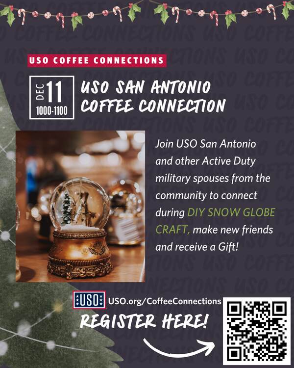 Join USO San Antonio and other Active Duty military spouses from the community to connect during DIY SNOW GLOBE CRAFT, make new friends and receive a Gift!