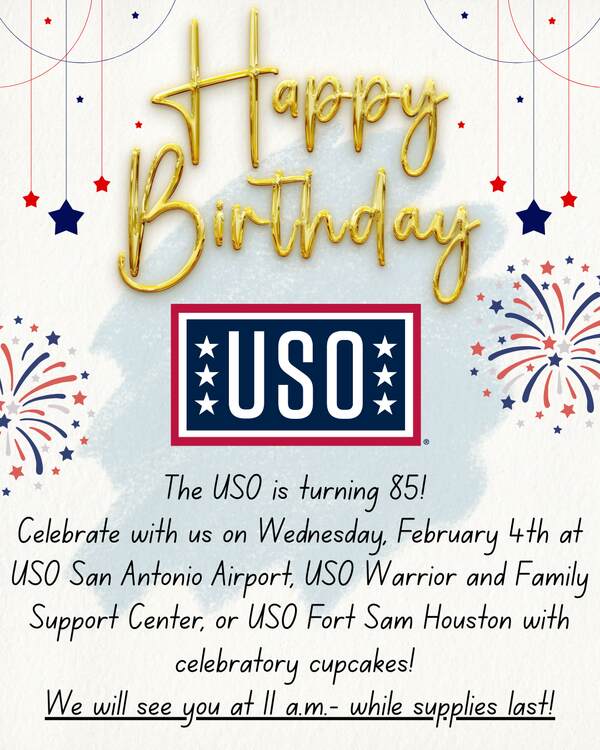 Celebrate with us on Wednesday, February 4th at USO San Antonio Airport, USO Warrior and Family Support Center, or USO Fort Sam Houston with celebratory cupcakes! We will see you at 11 a.m.- while supplies last!