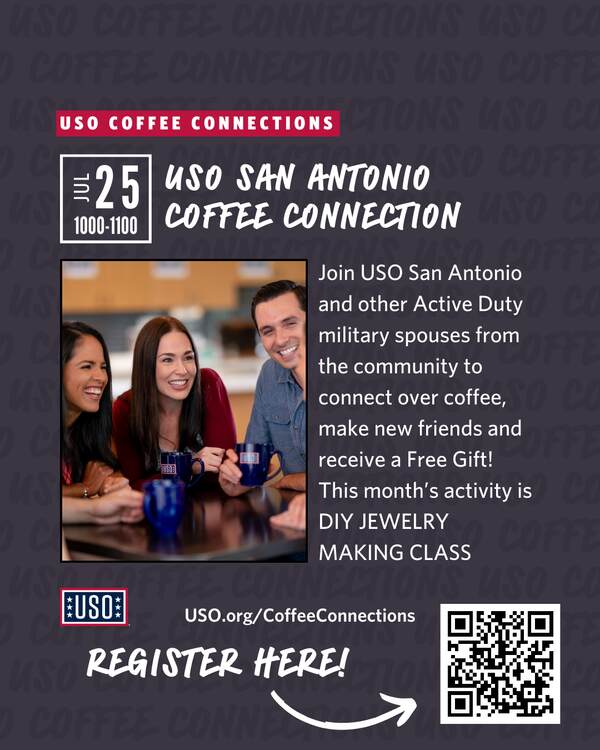 Join USO San Antonio and other military spouses from the community to connect over coffee and make new friends during Military Spouses Coffee Connection event. Enjoy DIY Jewelry Making Class & Gift!